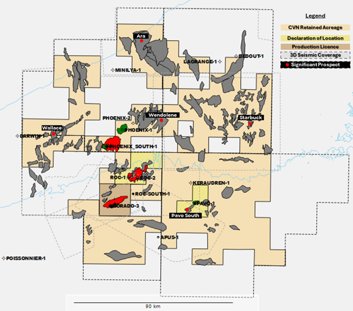 One of the well candidates is Ara-1, within Carnarvon’s WA-435-P permit area. Located north of the Dorado and Pavo oil discoveries, the Ara prospect is estimated to contain more than 549bcf of gas and 91m bl of condensate (Pmean, gross).